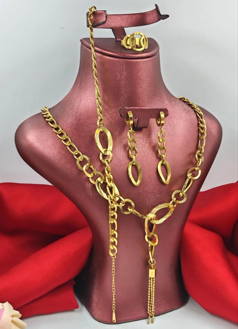 Parure de Luxe 4 Pièces en Acier Inoxydable Dorée – Élégance Intemporelle