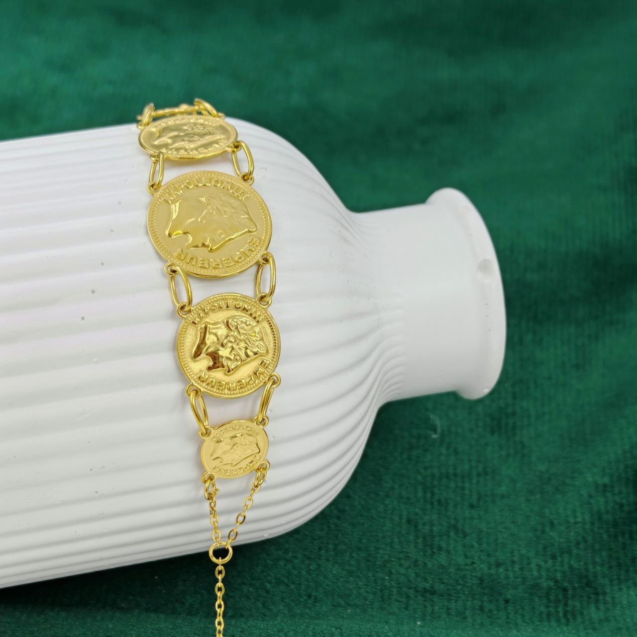 Bracelet Louiza impérial en acier inoxydable : médaillons dorés, style algérien chic