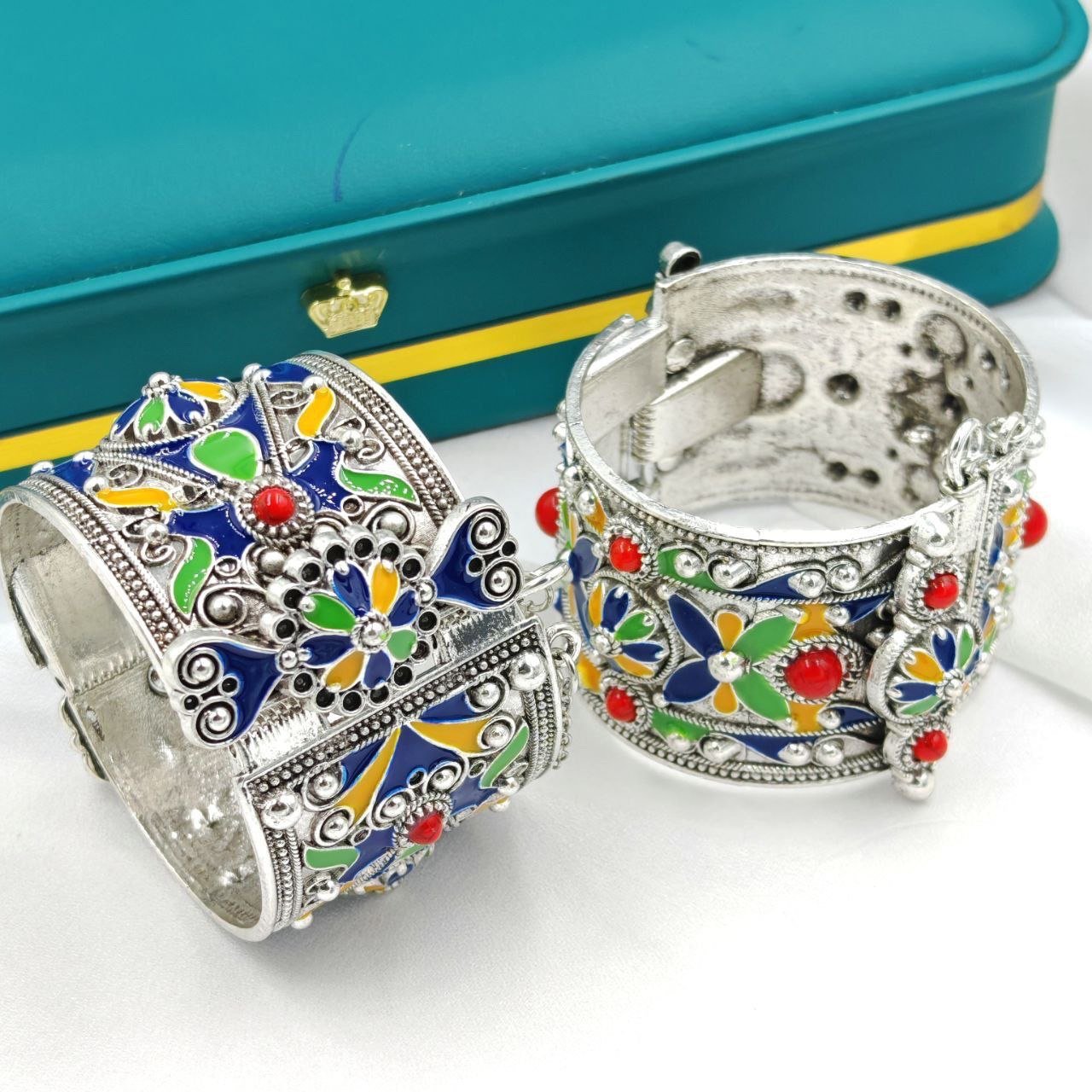 Bracelet manchette kabyle – émail multicolore & relief travaillé