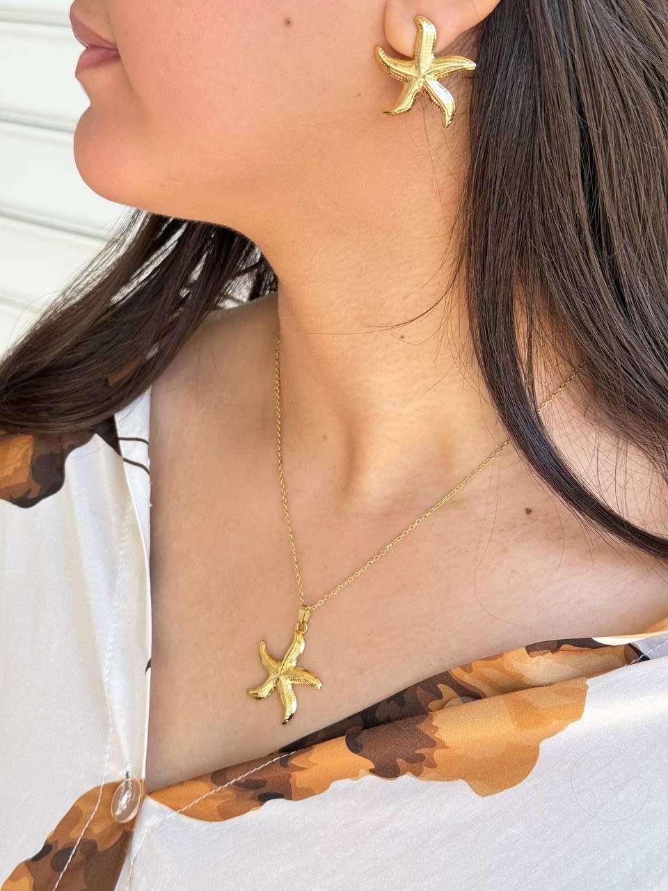 Parure Étoile de Mer dorée 18K en acier inoxydable