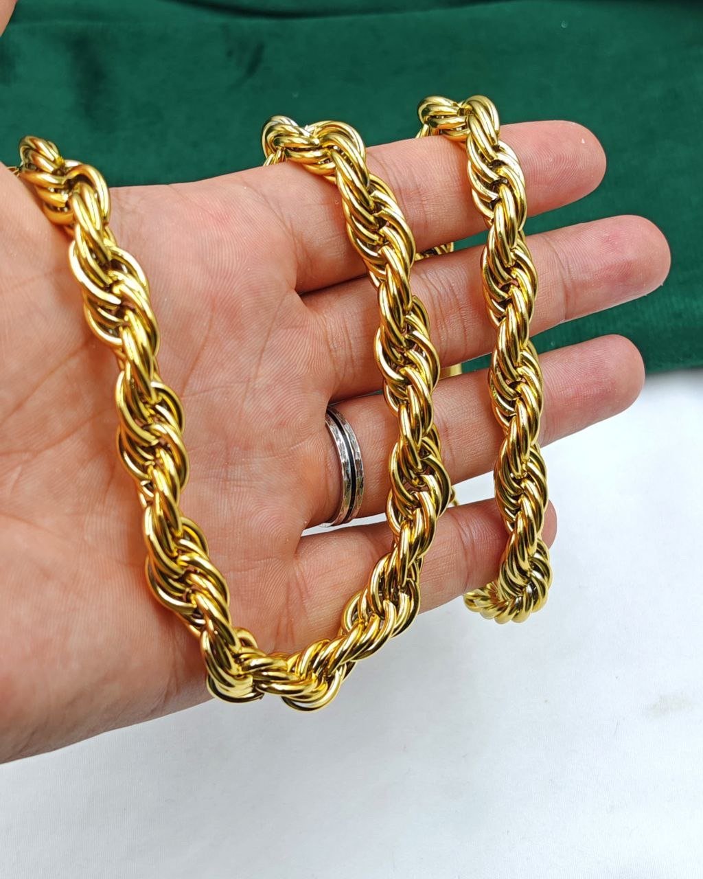 Maille krifcha (corde torsadée) au poli miroir pour un rendu lumineux et structuré. Conçue en acier inoxydable doré, la parure garde son éclat sans ternir et se porte aussi bien seule qu’en superposition.